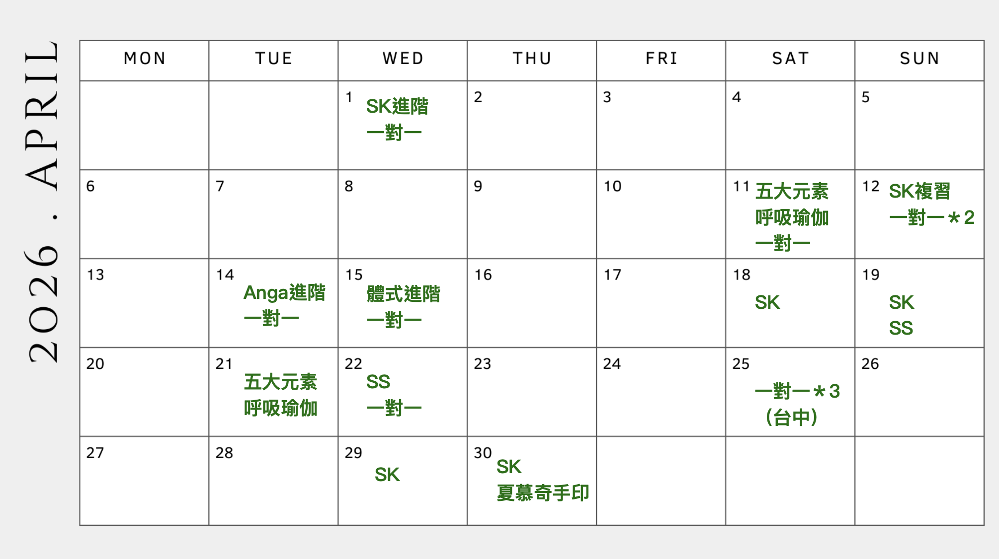 3. 課程皆為工作坊形式,課程結束後學員即可在家中進行全套瑜伽練習,與一般坊間須固定時段至教室的課程不同。
